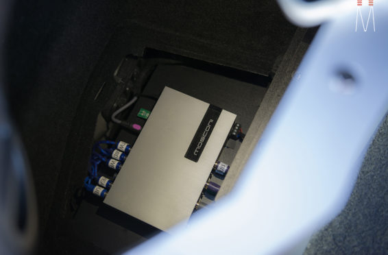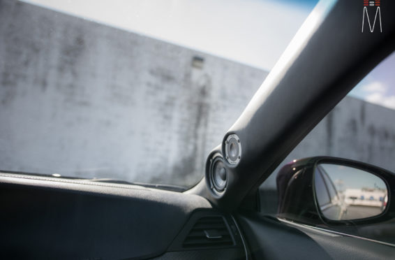 To adapt to the OEM signal, we pulled the signal off the hi-level outputs from the factory amplifier and input it directly into the Mosconi 8to12 Aerospace DSP. The entire system was run active and powered by two Mosconi Pro 5/30 – 5 Channel amplifiers. On the 5th channel of each amp we powered an Illusion C10XL Subwoofer. These amplifiers were absolutely amazing! You will probably see these become our staple in OEM Integration audiophile systems. Channels 1-4 are Class AB while the 5th Channel is a Class D that produces a measured 680 Watts on a 4 ohm load. Preset 1 of the DSP was set to run the OEM Radio while Preset 2 was used to run our Astell & Kern SP1000 DAP for the ultimate listening experience.