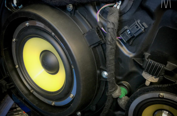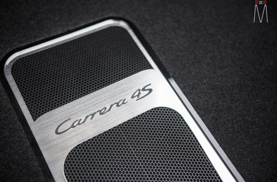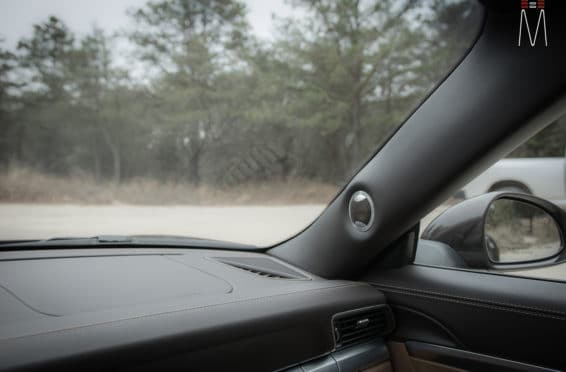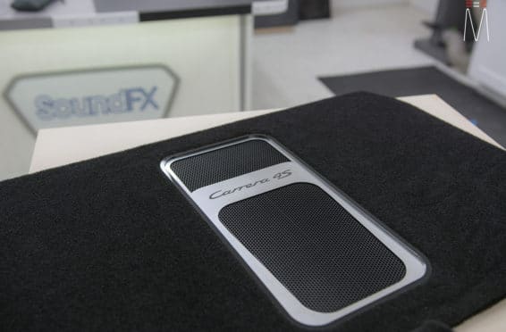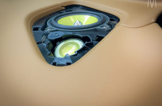 “This client brought us his Porsche for a straight forward audio upgrade. He owns a Porsche 911 Carrera 4S convertible so we started with a great set of front speakers since we would not be using a subwoofer. We installed a set of Focal 165KRX3 Kevlar speakers. We used the OEM locations for the mid and door woofers. Custom pillars were fabricated and rewrapped in matching leather to house the tweeters. The rear speakers consisted of a set of Focal 100KRS 4” component speakers.