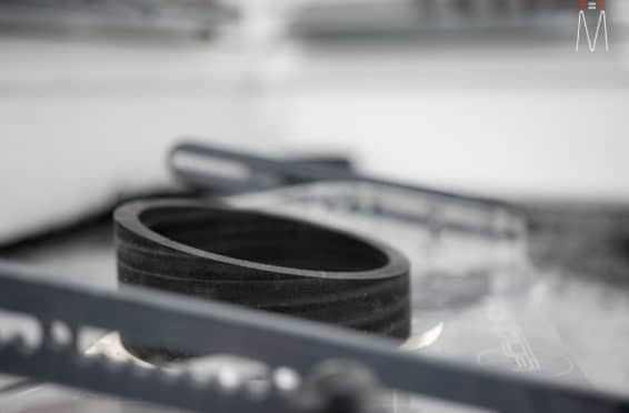 A custom fabricated enclosure was made to house our subwoofer. It was finished off with aesthetic trim made from multiple layers of acrylic. The trim is backed with multiple magnets for easy serviceability of the subwoofer. All of our amplifiers were mounted under multiple layers of decorative trim that lay in the lower storage area of the trunk.