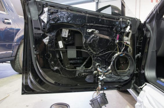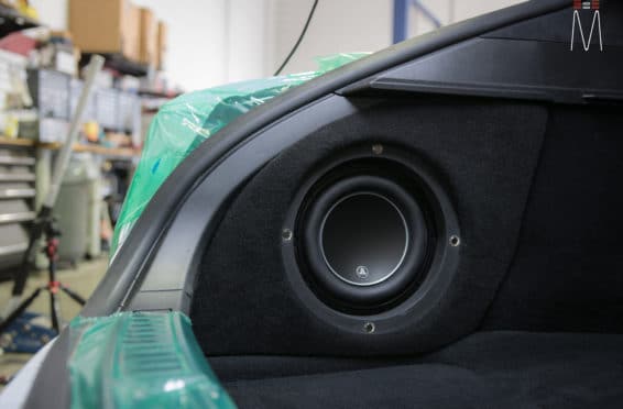 We installed Focal Flax component speakers in the front and Focal Flax coax for the rear. All doors were fully sound treated with Hushmat and Soundskins Pro. Speaker adapters were fabricated from acrylic to adapt our new speakers to the OEM mounting points. Mini rings were fabricated out of acrylic to snap our Focal tweeters into the a-pillars. Mosconi One amplifiers were chosen to get our client into a budget friendly class AB amplifier. All of our speakers run active through three Mosconi One Amplifiers. The customer previously had a JL Audio 10w6 which was used as our subwoofer. A fiberglass enclosure was fabricated to house our subwoofer. A grille and trim were fabricated from acrylic and attaches to our enclosure using magnets for quick serviceability.
