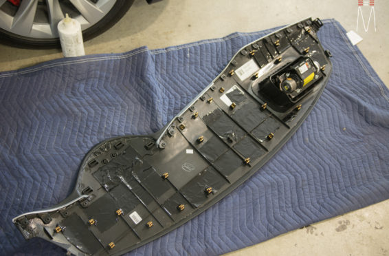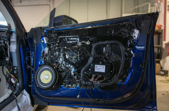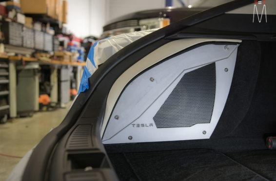 “Here is the our latest take on the Tesla Model S. This P100D was designed with a full Musaic Audiophile Conversion. We outfitted the system to utilize the factory OEM speaker locations. We laid out the front stage with a Focal Kevlar ES165KX2. The front doors were fully sound treated with HushMat. We treated the inner and outer door skin along with the inside of the door panel. A pair of acrylic speaker adapters were hand fabricated to mount our Kevlar woofer into the OEM speaker location. A pair of FAST Rings were used to seal the front of the speaker to the grille of the door. The tweeters were mounted in the factory location up on the a-pillars.