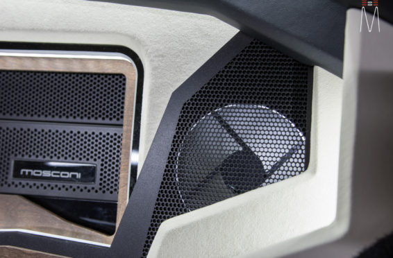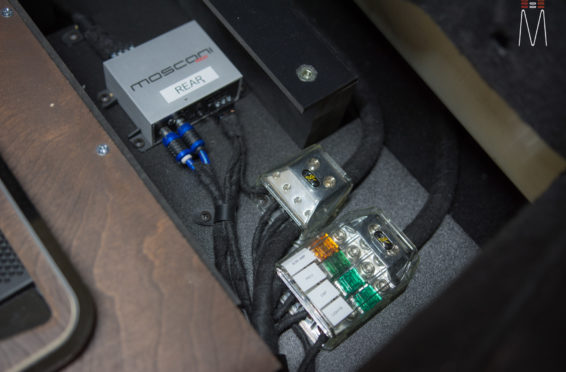 To maximize our budget, we kept the rear speakers factory. The front speakers were powered by a Mosconi 5/30 Amplifier. The first four channels (Class AB run the Focal Kevlar 2-Way speaker set completely active. The fifth channel (Class D) powered a Focal 10” Kevlar subwoofer. A Mosconi Pico amplifier was used to power the rear speakers. A Mosconi 6to8 Aerospace was used as our Digital Sound Processor. This insured that we had a flat and full range signal going into our amplifiers.