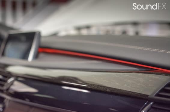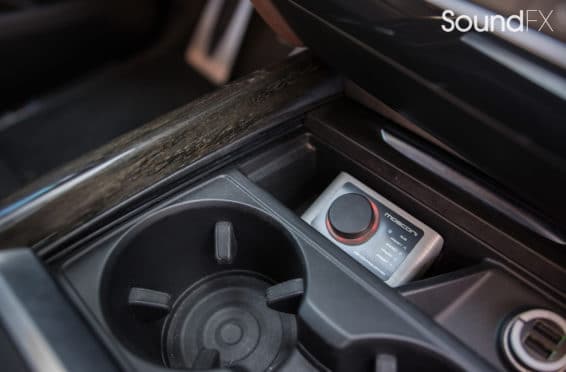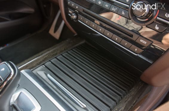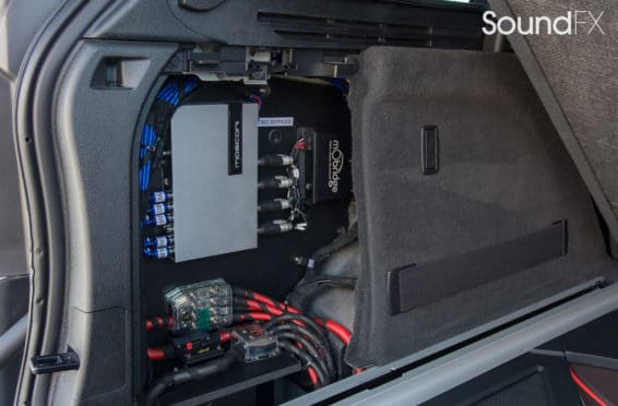 All system fuses and main power are easily accessible behind the driver rear removable panel in the trunk. This was a great location to install our Mosconi DSP along with the MoBridge DA2. We also installed a switch to make the MoBridge invisible when the car is taken to the dealer for service.