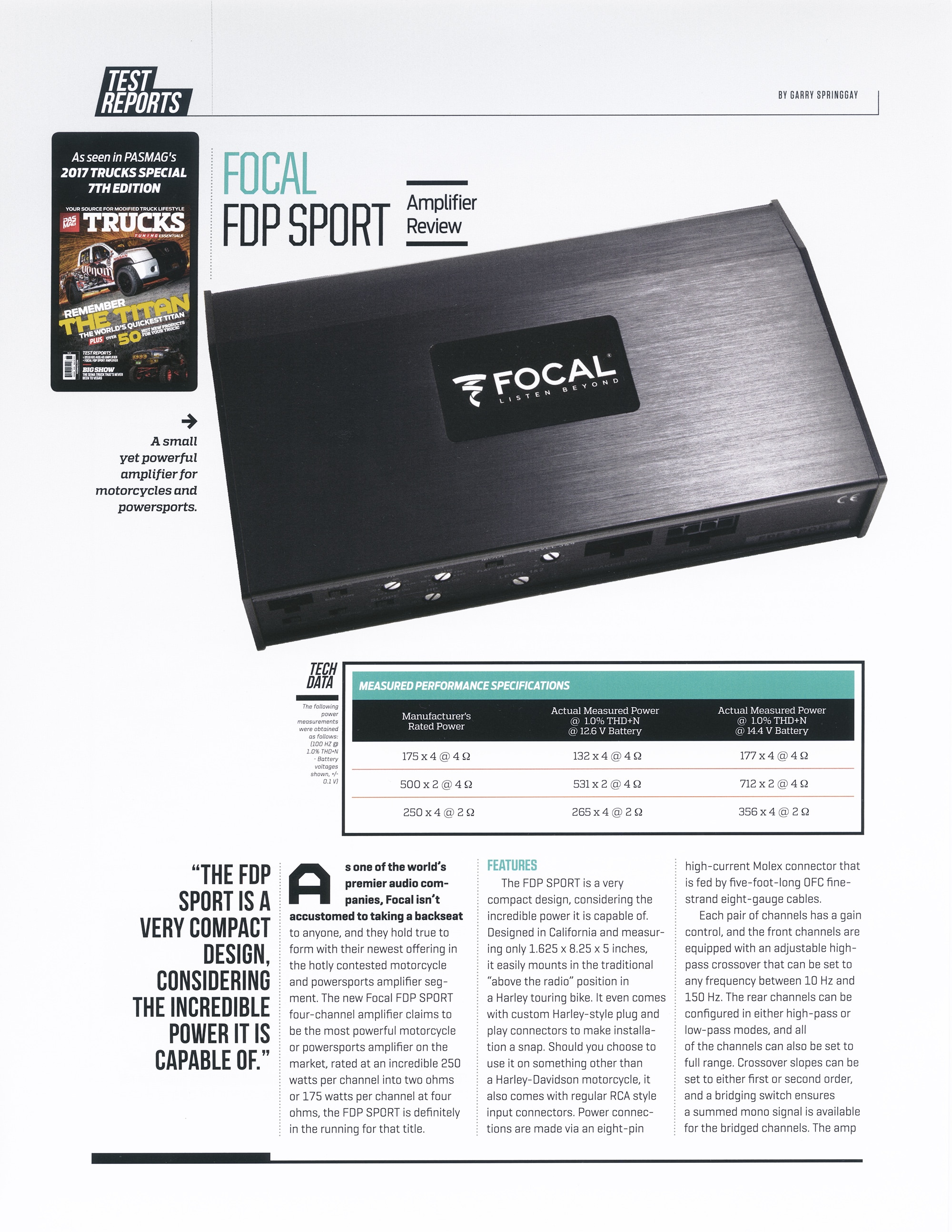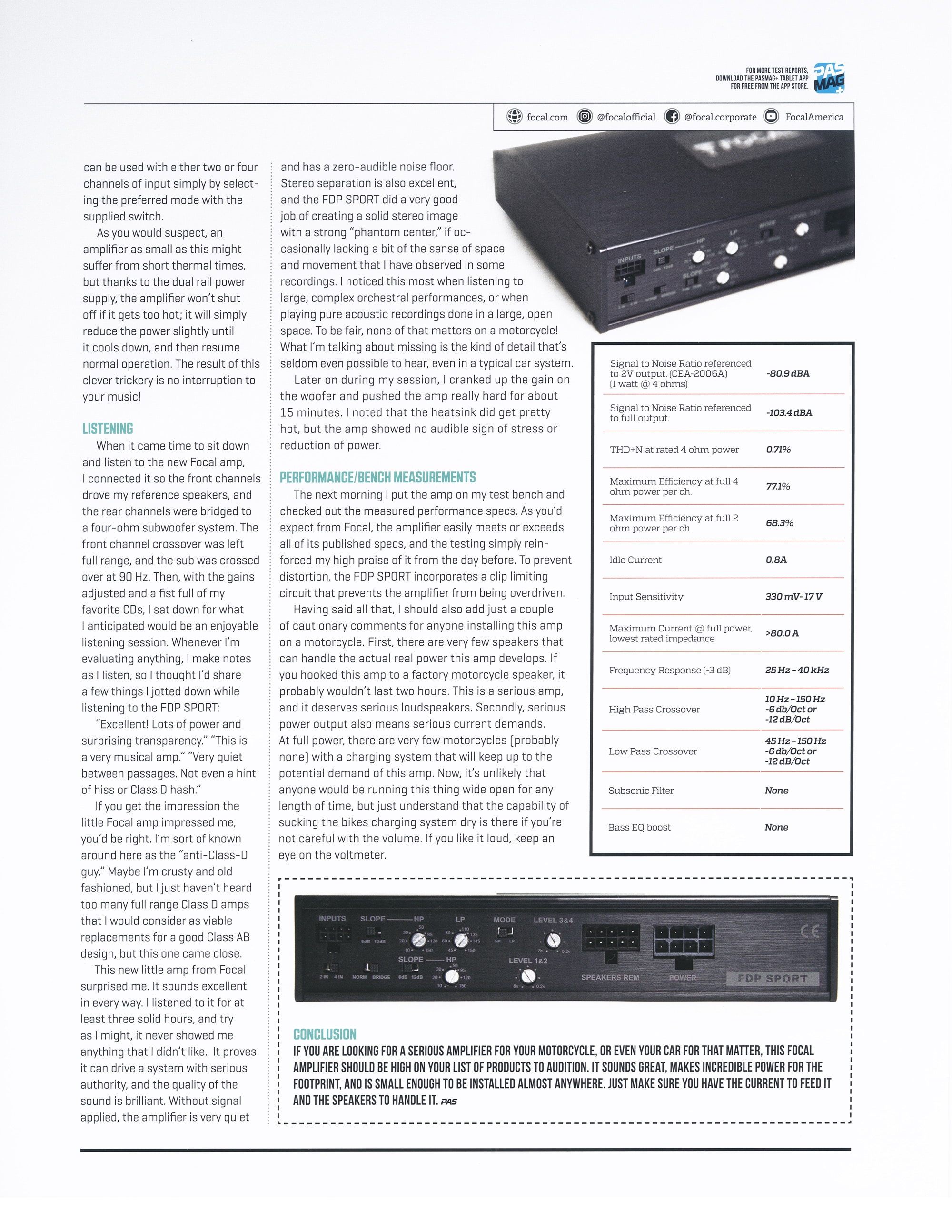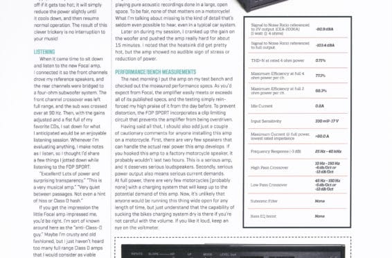 He recommends that “If you are looking for a serious amplifier for your motorcycle, or even your car for that matter, this Focal amplifier should be high on your list of products to audition. It sounds great, makes incredible power for the footprint, and is small enough to be installed almost anywhere.”