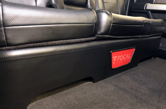 - Finish: Black leatherette with stitching, Focal Logo, Black carpet